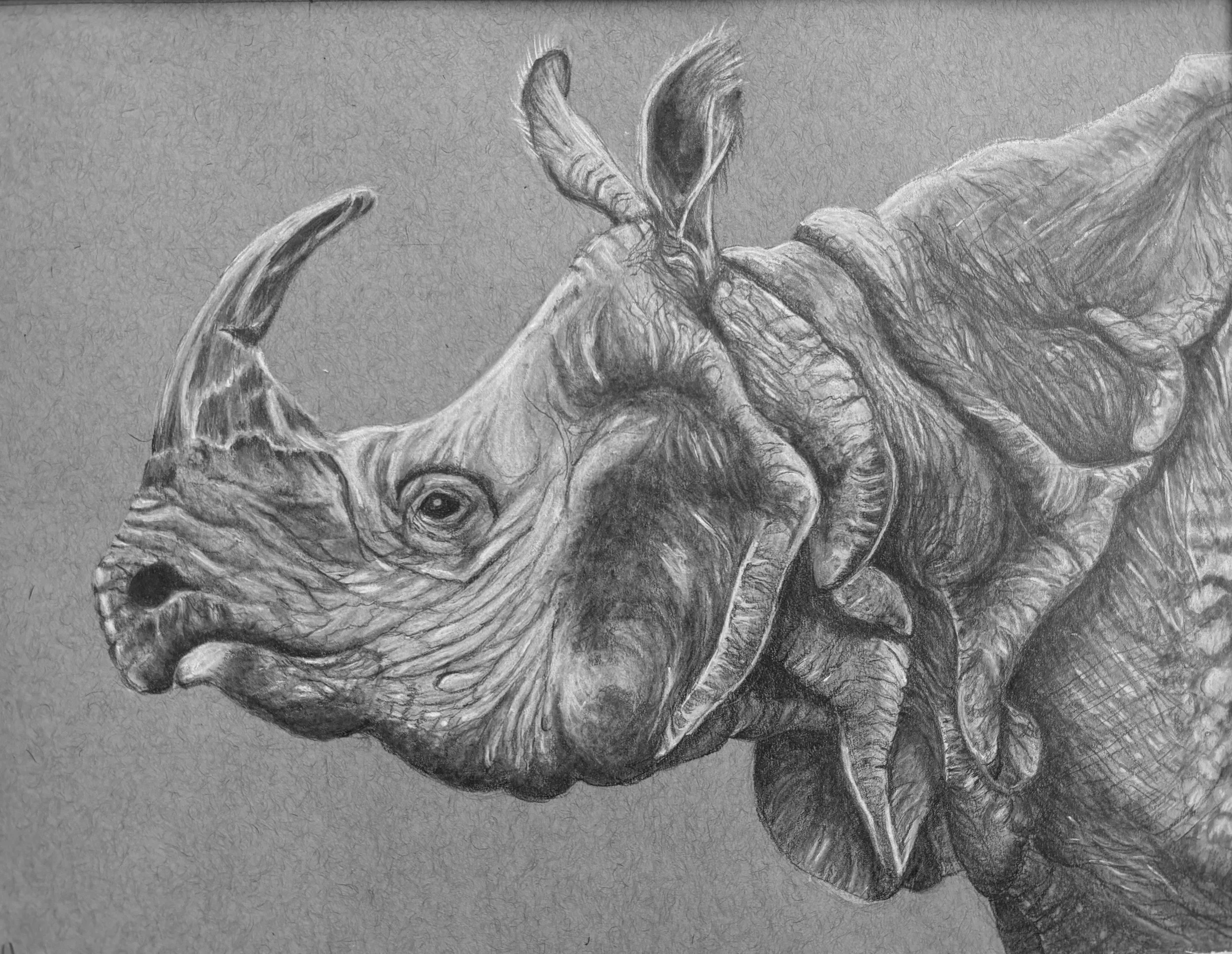 Tamaskar, Ujwala, "Rhino", charcoal & graphite, 16 x 20", $600