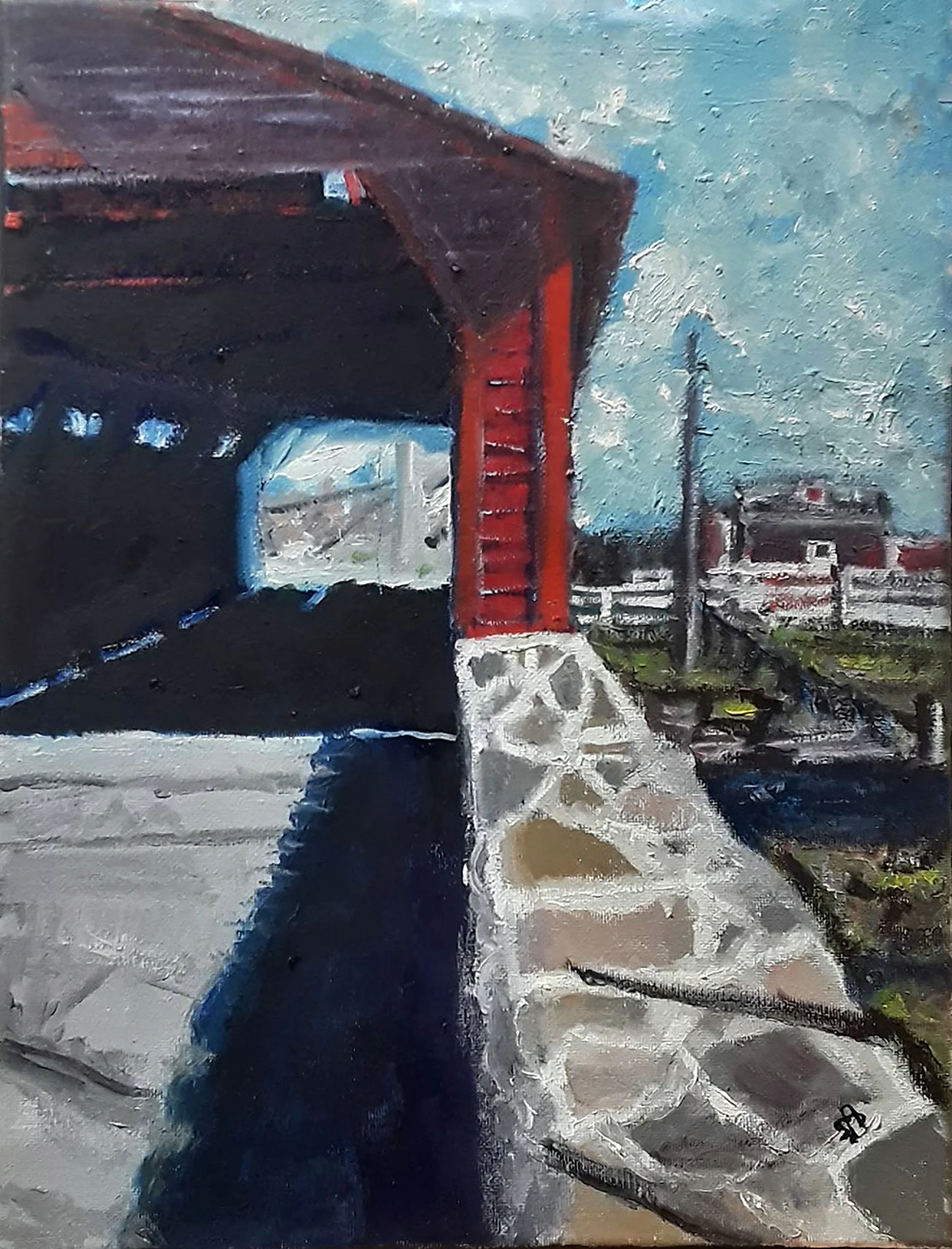 Brown, Susan Fitch, "Bridge to Utica", oil on canvas, 14 x 11", $250