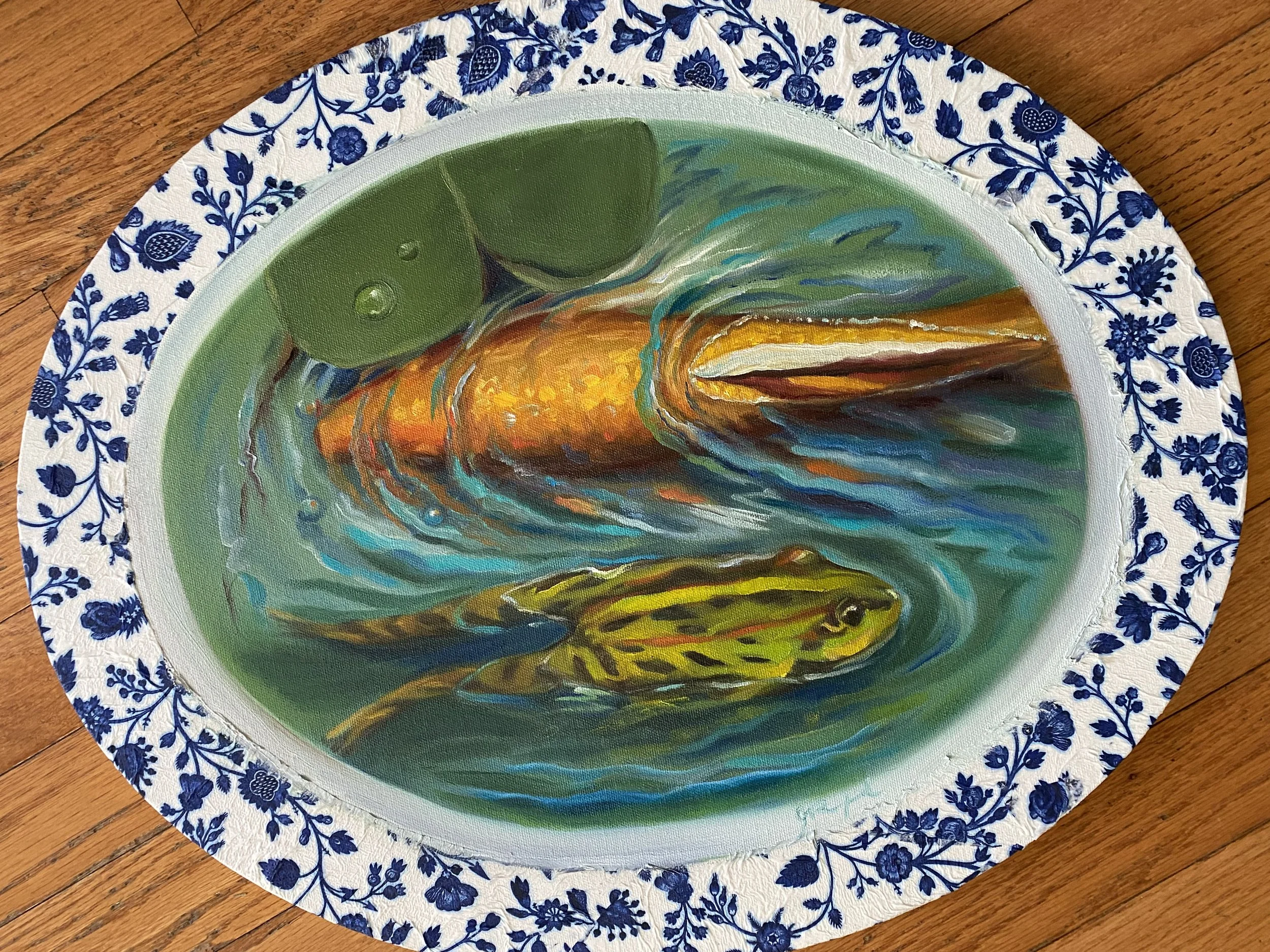 Rutherford, Jennifer, "Passing Lanes", Mixed Media w/ oil, 20 x 16" (oval), $375