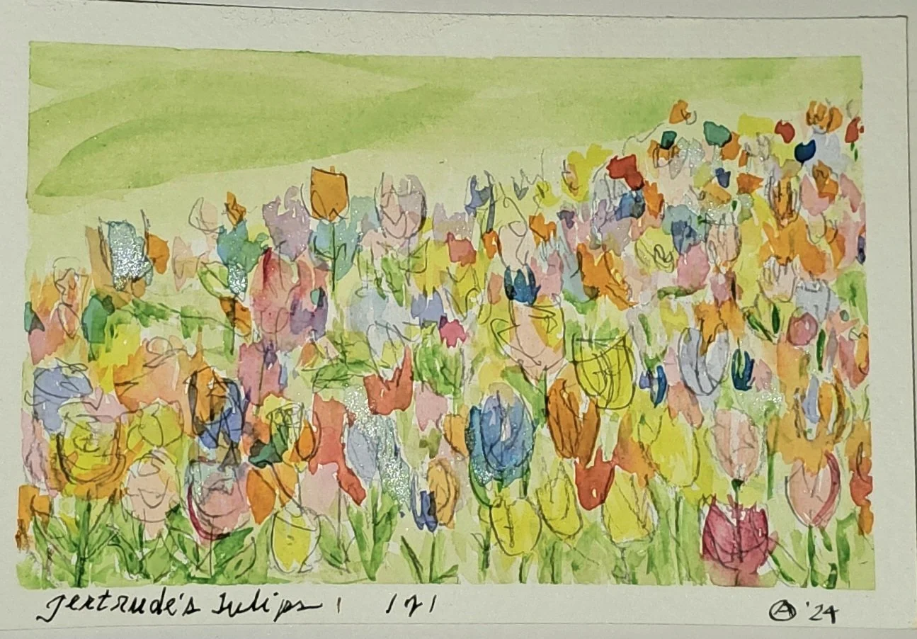 Rickert, Ann, "Gertrude's Tulips", w/c, 4 x 6", $130