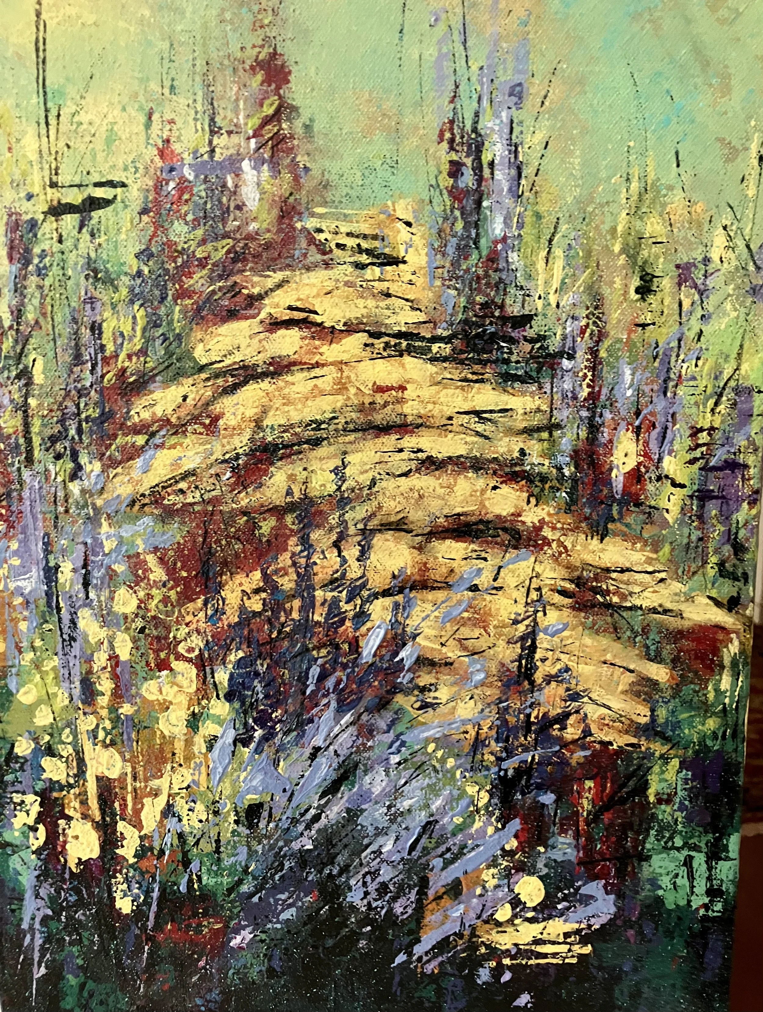 Brown, Susan Fitch, " Rock'n Peace Garden", oil and mixed media, 11 x 7", $200