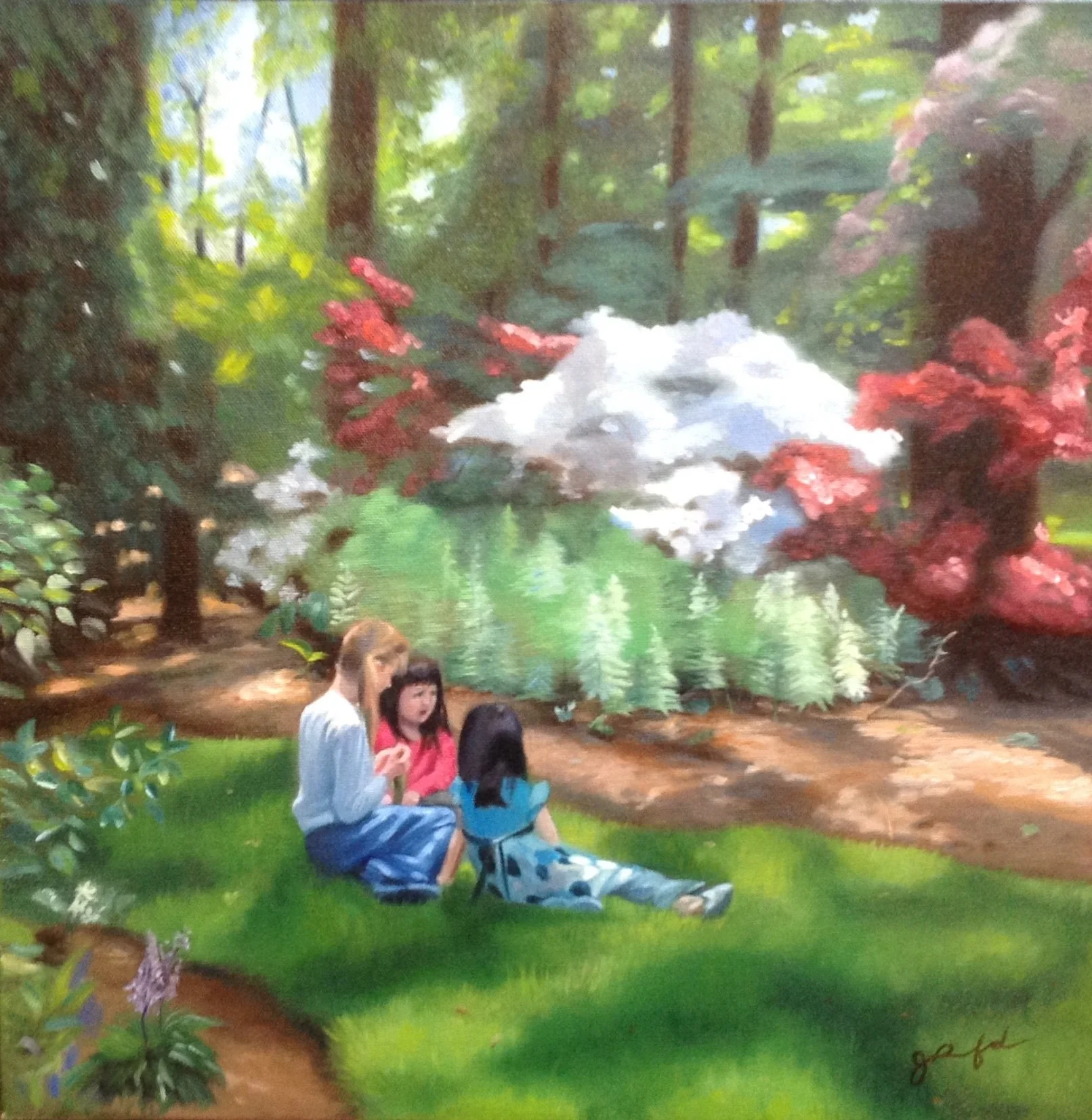 Rutherford, Jennifer, "Friends", oil on canvas, 18 x 18", $400